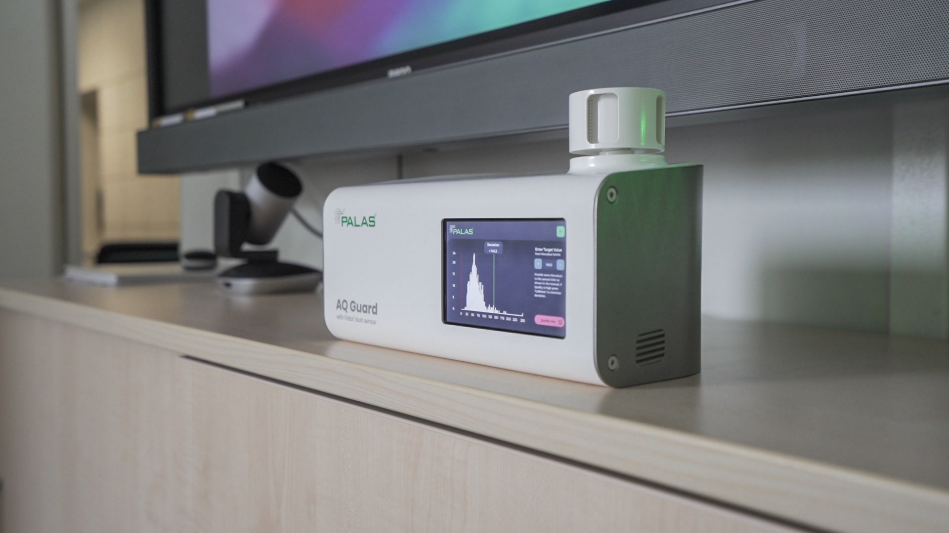 De Palas AQ Guard is een geavanceerde luchtkwaliteitsmonitor die ontworpen is voor nauwkeurige en continue metingen van fijnstof en gasconcentraties in binnenruimten. Met behulp van optische lichtverstrooiingstechnologie detecteert het apparaat deeltjes in een bereik van 0,175 tot 20 µm en levert het gedetailleerde informatie over PM1, PM2.5, PM4, PM10, totale stofbelasting, deeltjesaantallen en deeltjesgrootteverdeling.