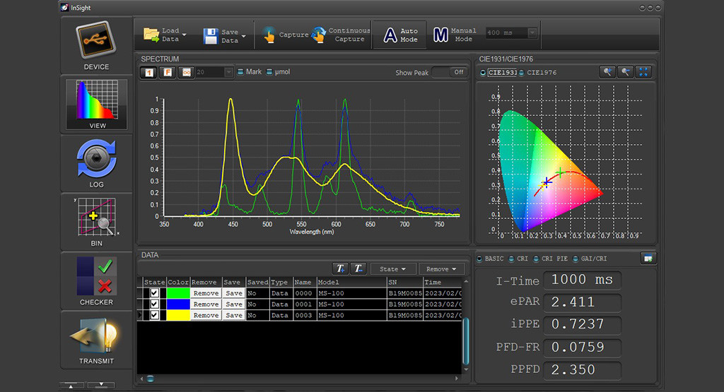 Apogee's nieuwe MS-100 InSight-apparaat is een draagbare, draagbare spectroradiometer die speciaal is ontworpen voor het uitvoeren van spectrale metingen en het analyseren van allerlei soorten groeilampen.