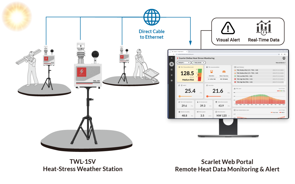 -Realtime cloudmonitoring: Via een Ethernet-verbinding stuurt het apparaat gegevens naar het Scarlet online hittemonitoringsportaal. Gebruikers kunnen deze gegevens op afstand bekijken en downloaden, en ontvangen directe waarschuwingen via browser of e-mail, wat proactieve veiligheidsmaatregelen mogelijk maakt .